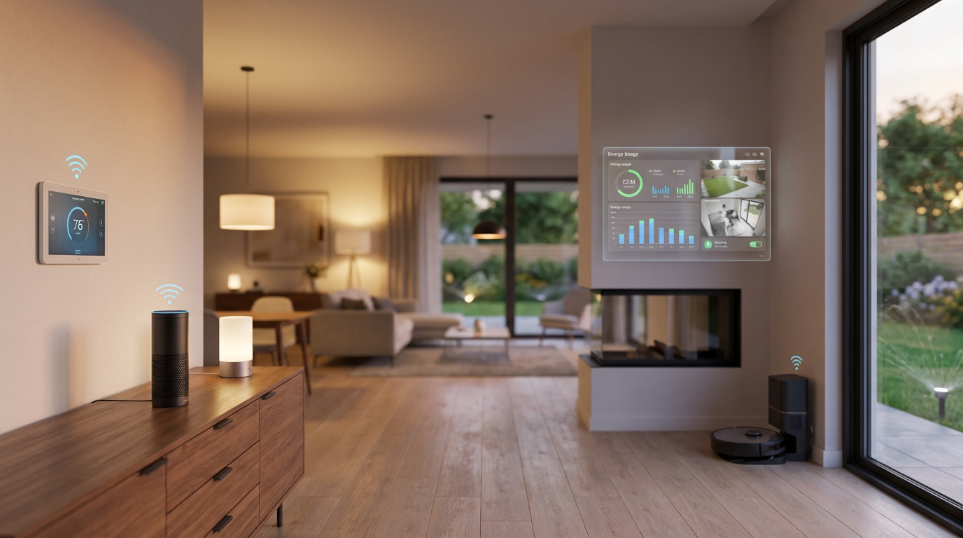 Durch den Einsatz von smarten Thermostaten und automatisierten Verschattungssystemen lässt sich der Energieverbrauch signifikant senken, indem Heizung und Licht nur bei tatsächlichem Bedarf aktiviert werden. Sensoren erkennen offene Fenster oder die Abwesenheit von Bewohnern und passen die Systemleistung in Echtzeit an die Gegebenheiten an.